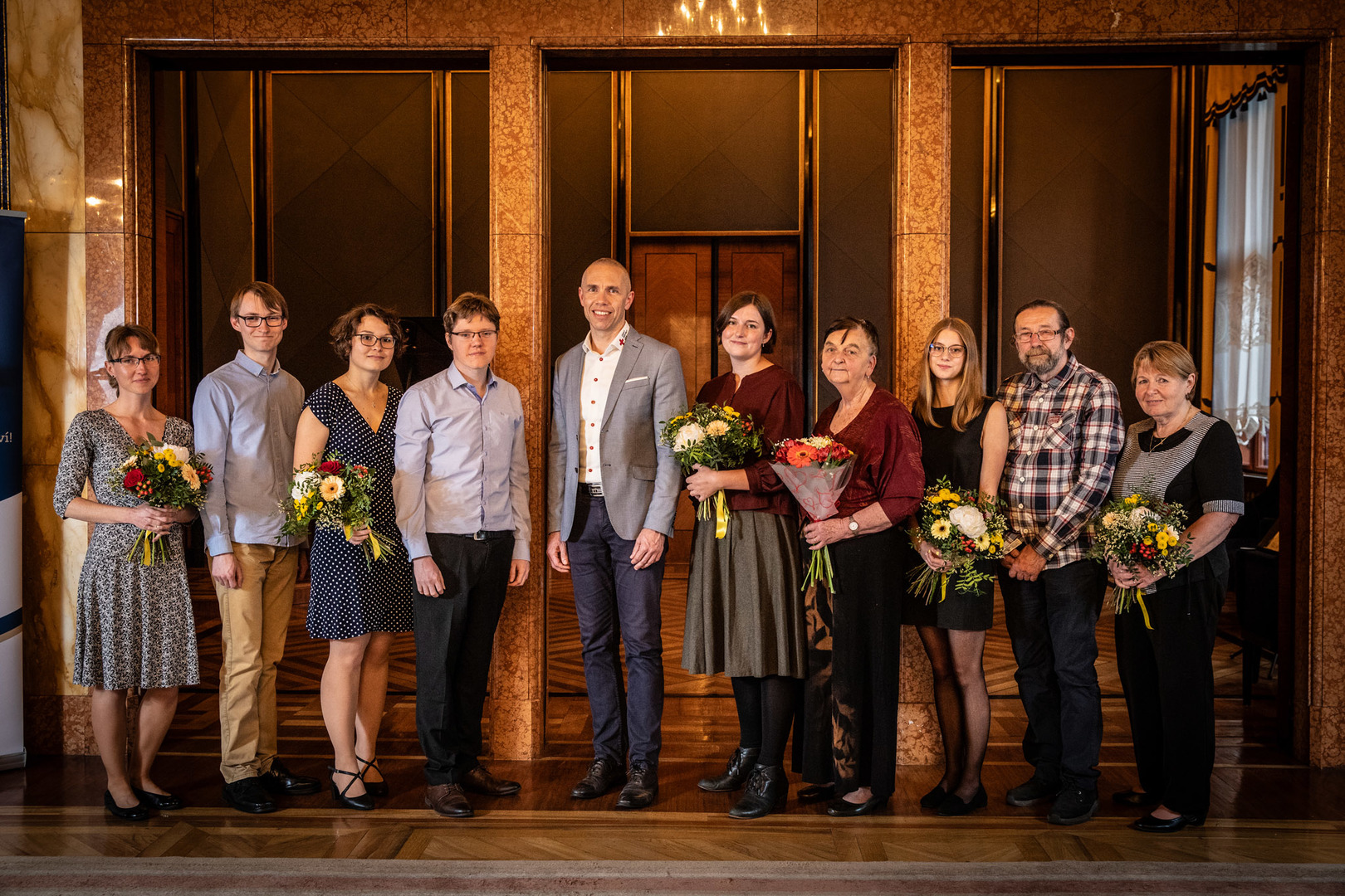 Předání cen se konalo v rezidenci pražského primátora a v publiku paní Evu podpořila Ilona Veselá, ředitelka DS Chodov, nechyběla koordinátorka dobrovolníků a samozřejmě také členové rodiny.
