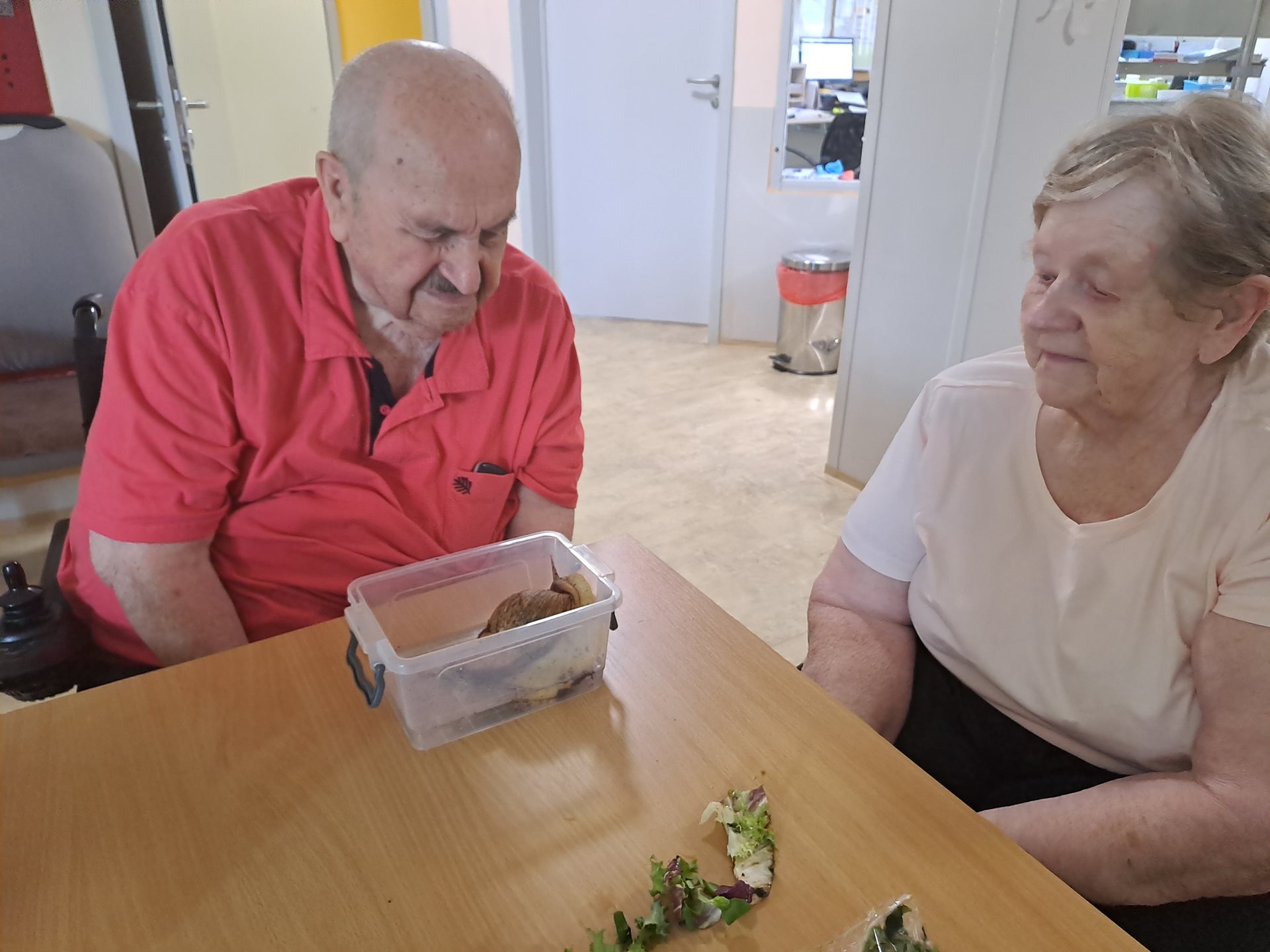 Do domova A také zavítala zajímavá zvířecí návštěva v podobě dvou velikých šneků oblovek. Klienti si je mohli prohlédnout a sáhnout si na ně. Od jejich chovatelky, aktivizační pracovnice Terezy se o nich dozvěděli mnoho zajímavostí. Jejich přítomnost si užila i paní Eva, kterou šneci navštívili v jejím pokoji. Fotografie z návštěvy si můžete prohlédnout v na straně 20 časopisu Listy z Domova.