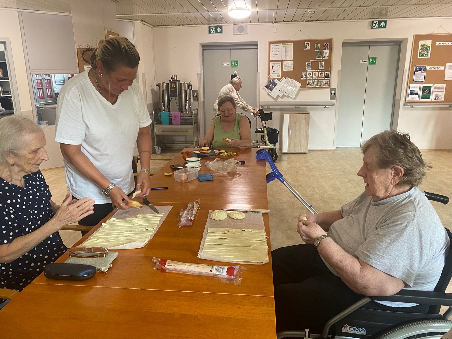 Na patře A1 si klienti o víkendu společně s pečovatelkou Marikou upekli něco dobrého ke kávě. Tentokrát to byla jablka v županu a slané tyčinky. Pečení je moc bavilo a navíc si velice pochutnali.