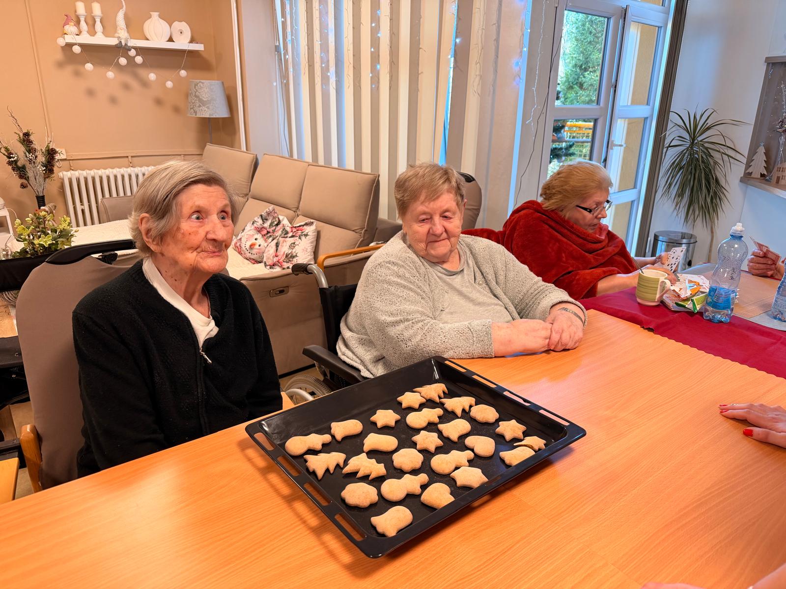 Aktivizační pracovnice Tereza s koordinátorkou péče Lucií spolu s klienty upekly a ozdobily perníčky, které rozvoněly celé patro A2.