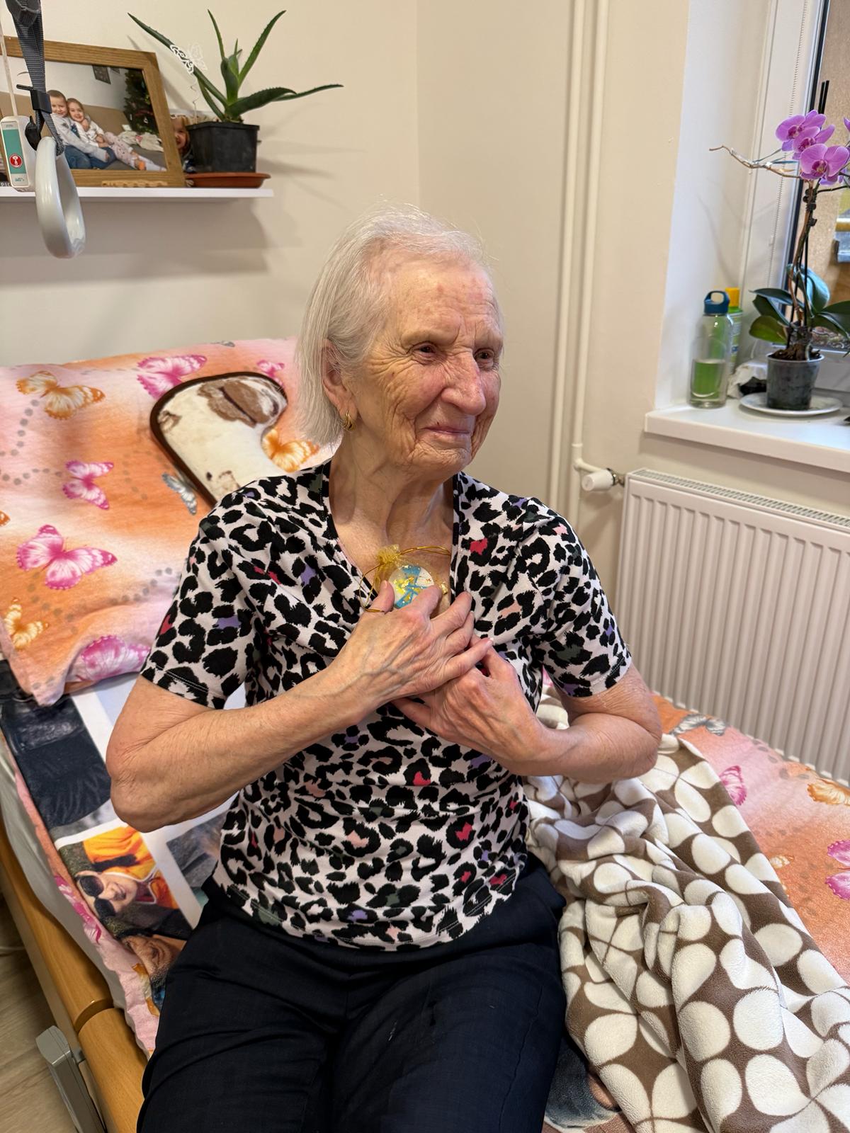 Paní Magdu navštívila milá dárkyně z programu „Ježíškova vnoučata“ i se svými dětmi a přinesli paní Magdě dárek v podobě deskové hry "Člověče, nezlob se!", kterou si moc přála. Rovnou si ji společně zahráli a skvěle se bavili. Všichni měli z návštěvy velikou radost a domluvili se, že se znovu uvidí.