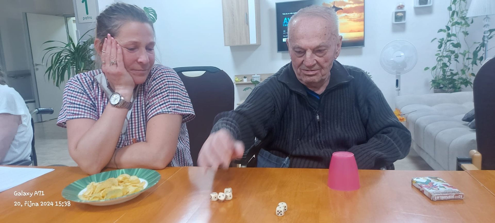 Trénování paměti zábavnou formou si užili klienti s aktivizační pracovnicí Terezou, tentokrát na téma české písničky, o kterých si povídali a přiřazovali je k jejich interpretům.