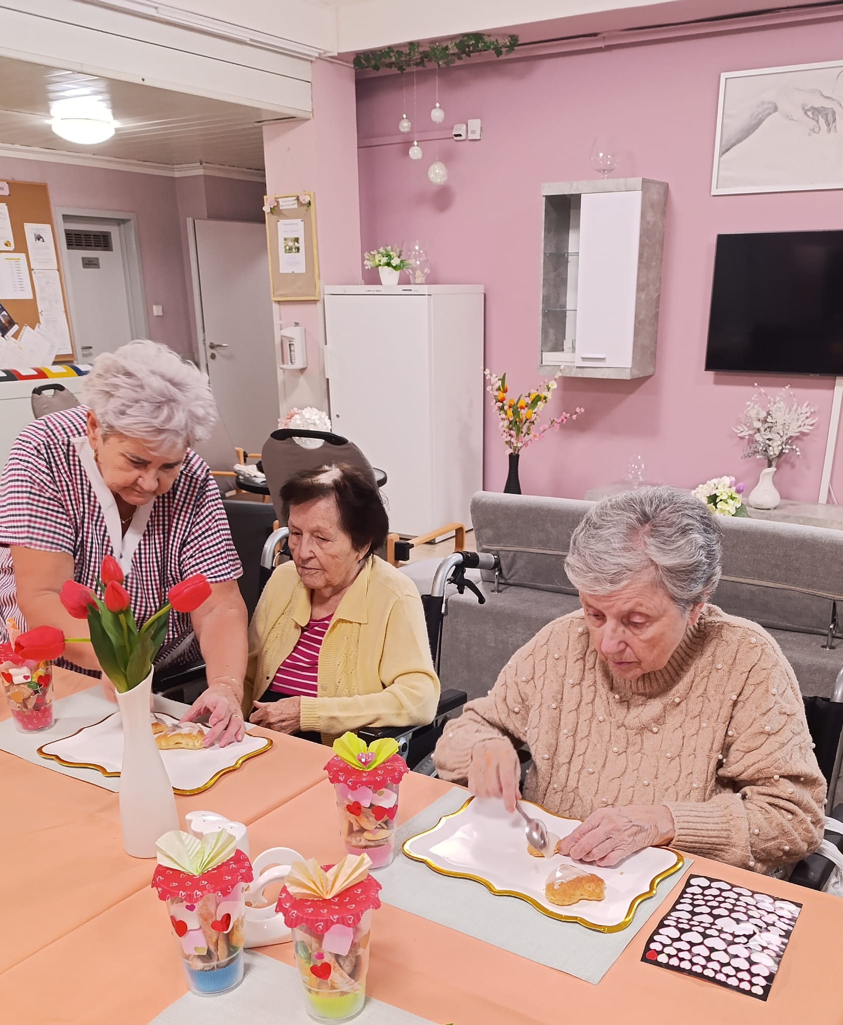 Přímo na sv. Valentýna v sobotu 14. 2. oslavili zaměstnanci Jitka, Luboš a Táňa tento novodobý svátek zamilovaných. Klienti si užili krásné společné odpoledne a mnoho sladkých dobrot, které pro ně připravily dobrovolnice - cukrářky, v rámci 4. ročníku akce Festival srdcí - charitativní pečení pro domovy pro seniory, který se koná pod záštitou Asociace kuchařů a cukrářů ČR. Cílem je potěšit, mít příležitost k setkání a také seniorům poděkovat za péči, kterou věnovali předchozím generacím.