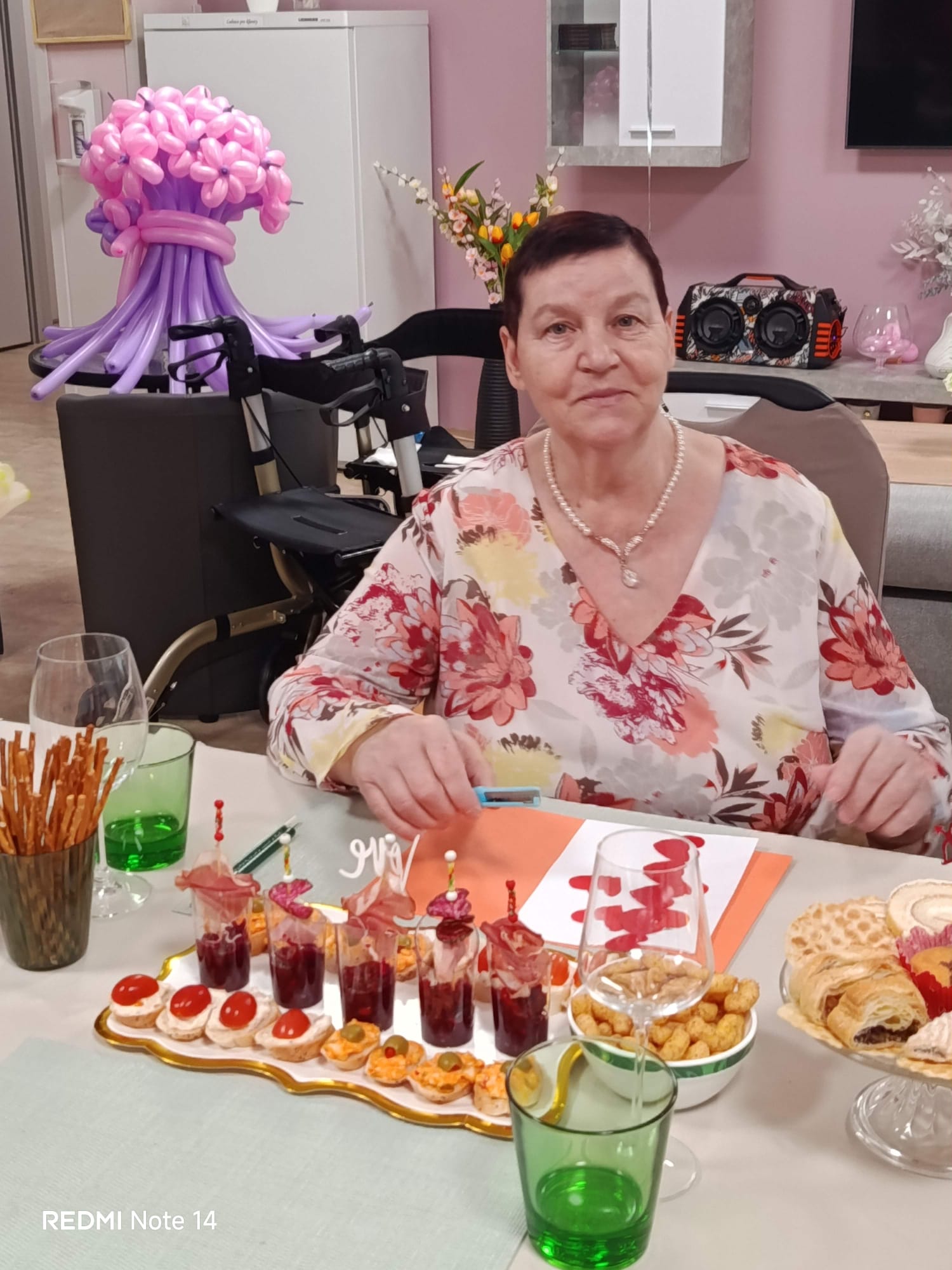 Na patře A3 oslavila paní Mária své 70. narozeniny ve velkém stylu spolu s ostatními obyvateli Domova. Nechybělo občerstvení, víno na přípitek, narozeninová výzdoba s balónky a girlandami. Kdo chtěl, mohl si při hudbě zatančit nebo pozorovat dění v hale.