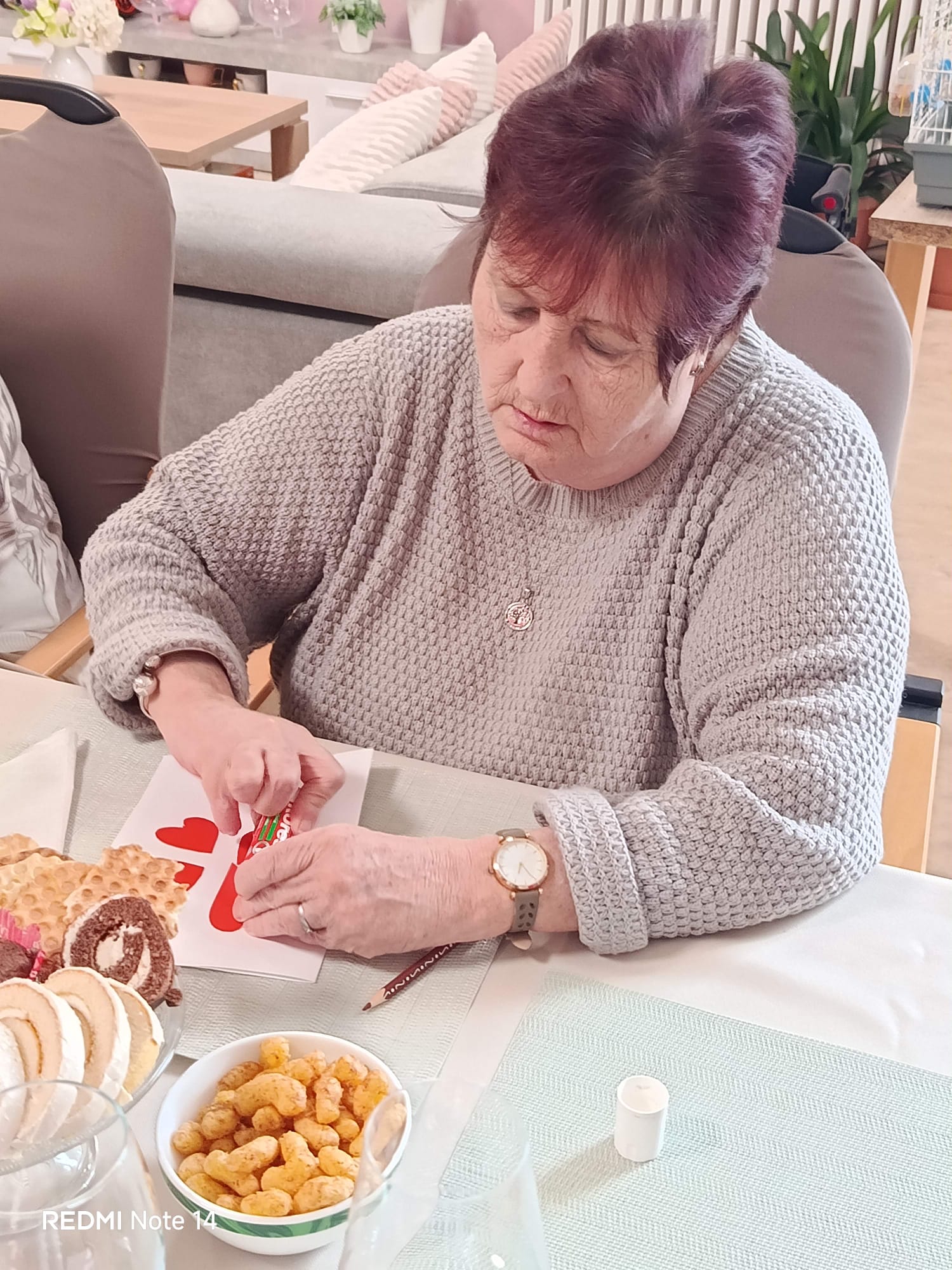 Na patře A3 připravily paní pečovatelky program, při kterém spolu s klienty vyráběly dárečky k svátku Sv. Valentýna. Kromě dárku paní Táňa a paní Marie upekly pro klienty přímo na patře sladkosti k odpolednímu posezení u kávy.