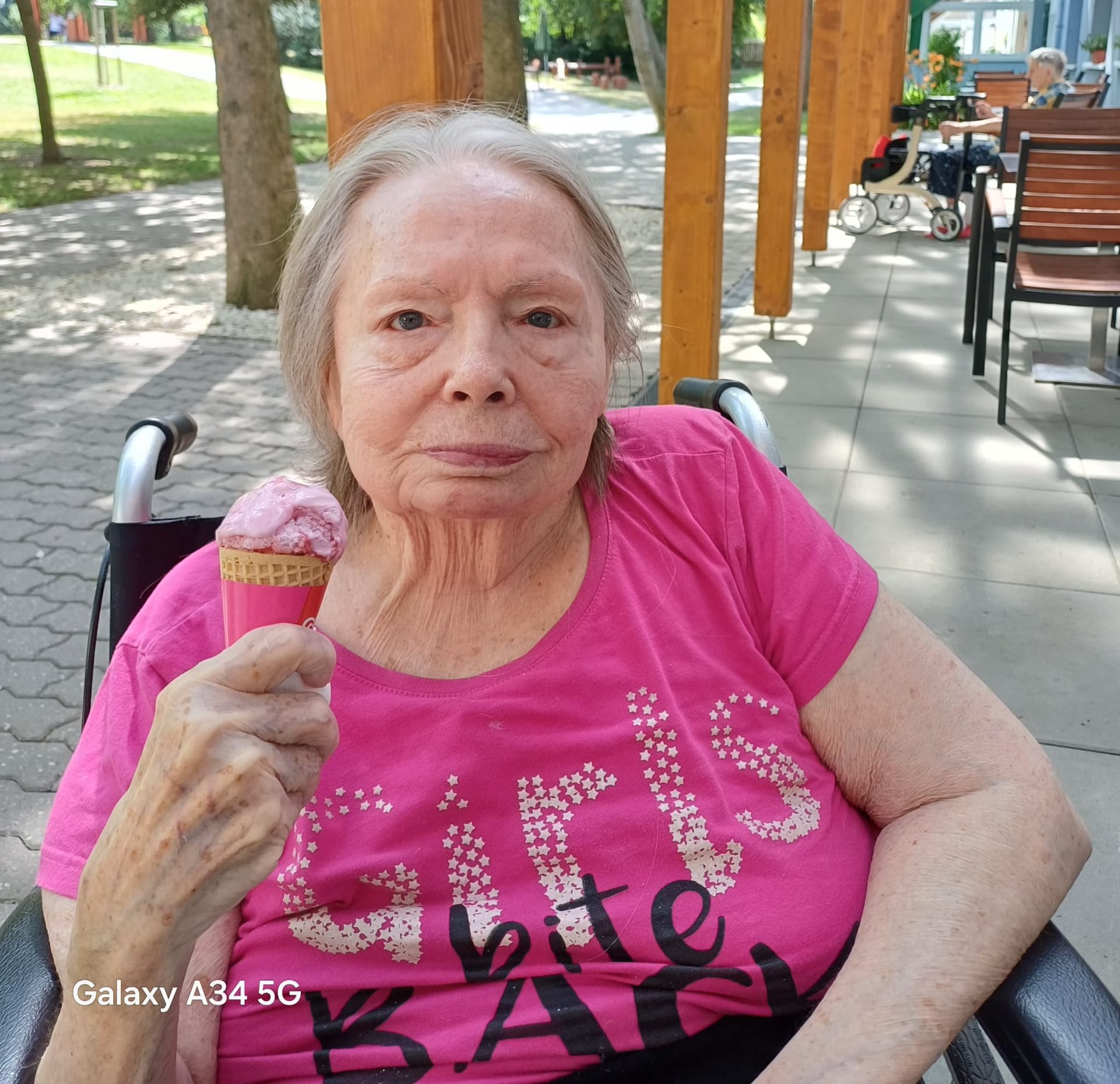 Paní Judita a paní Jaroslava si společně zpříjemnily letní počasí pohárkem zmrzliny.