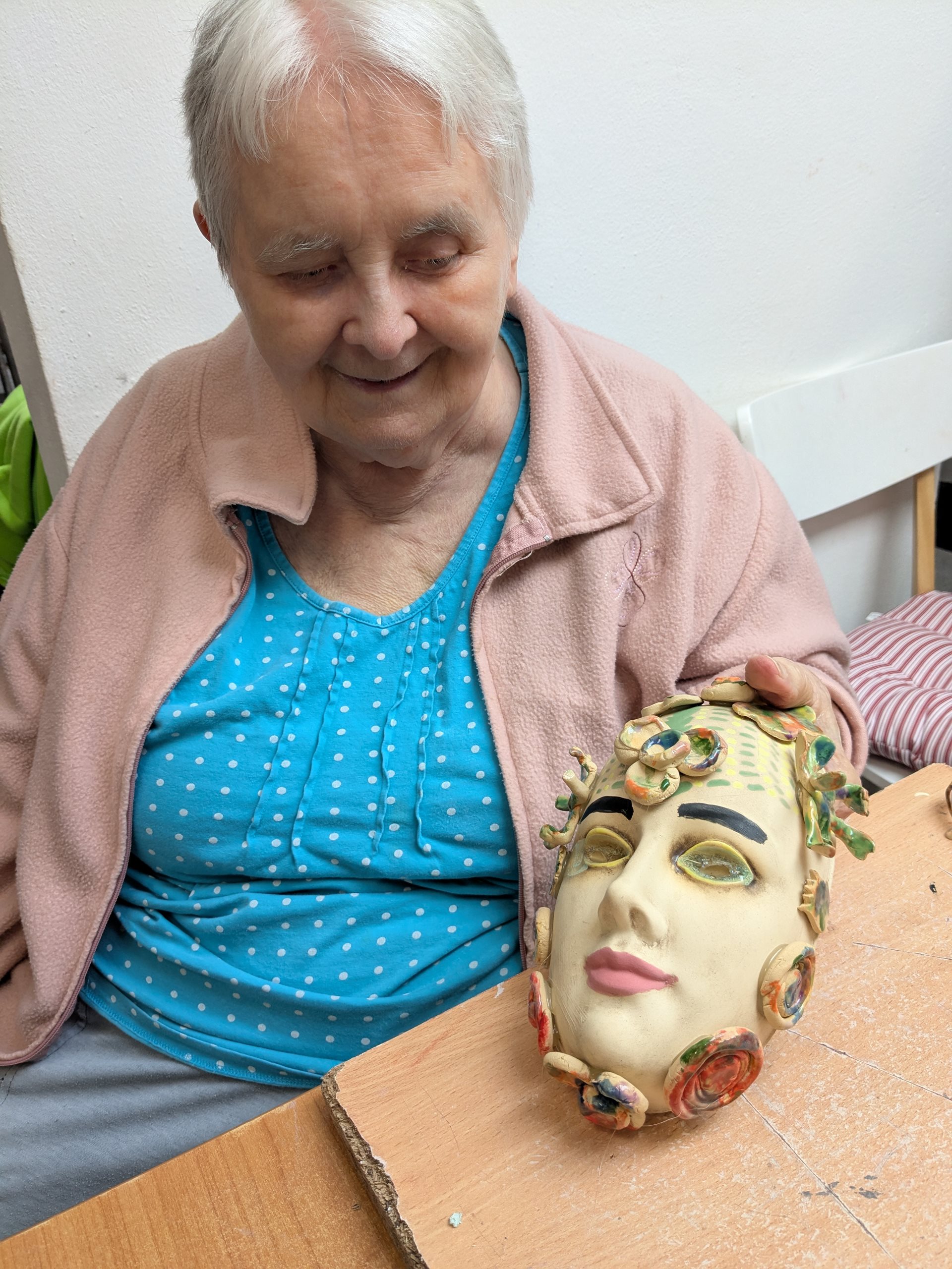 Paní Karla se dlouhodobě a ráda navštěvuje keramickou dílnu. Tentokrát vytvořila úžasnou masku.