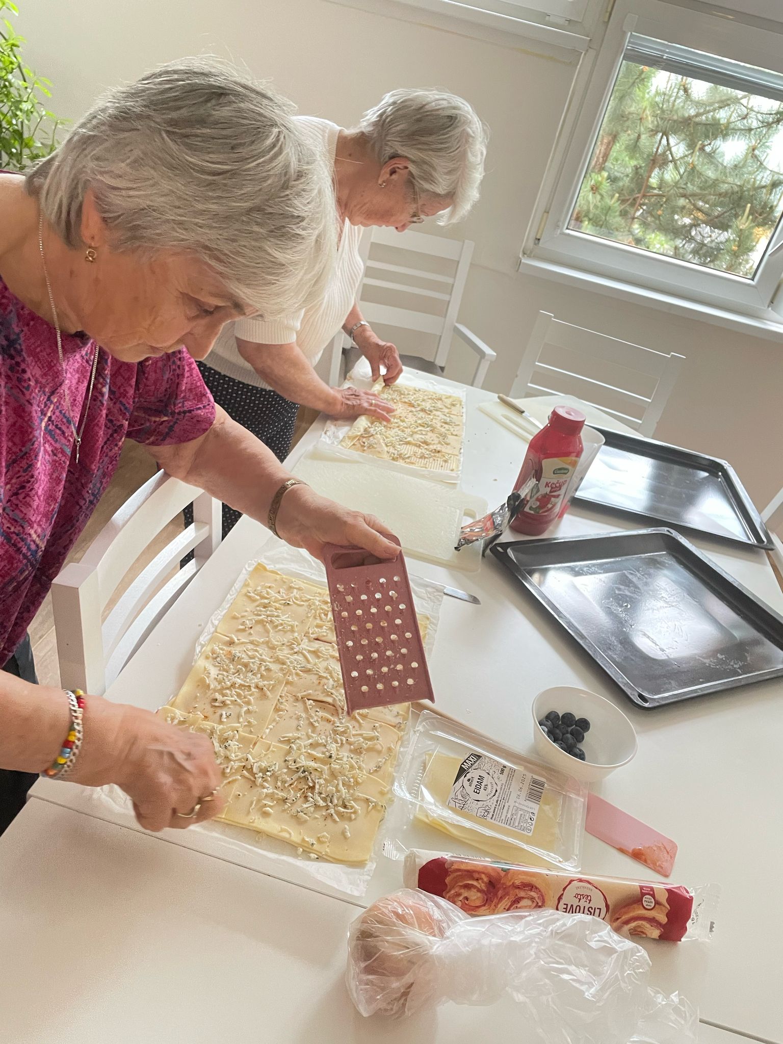 Nezahálí ani kulinářský klub - klienti si tentokrát pochutnali na buřtech na pivu, také si upekli borůvkový koláč, při jehož přípravě si s aktivizační pracovnicí Terezou i zazpívali a s pečovatelkami si připravili letní dezert z ovoce a šlehačky. Při jiné příležitosti si zase pochutnali na vlastnoručně upečených pizza šnecích a tvarohových šátečcích s borůvkami.