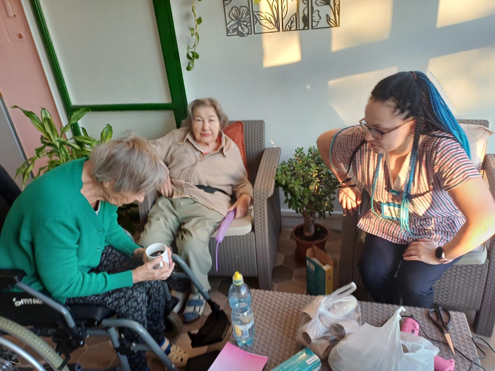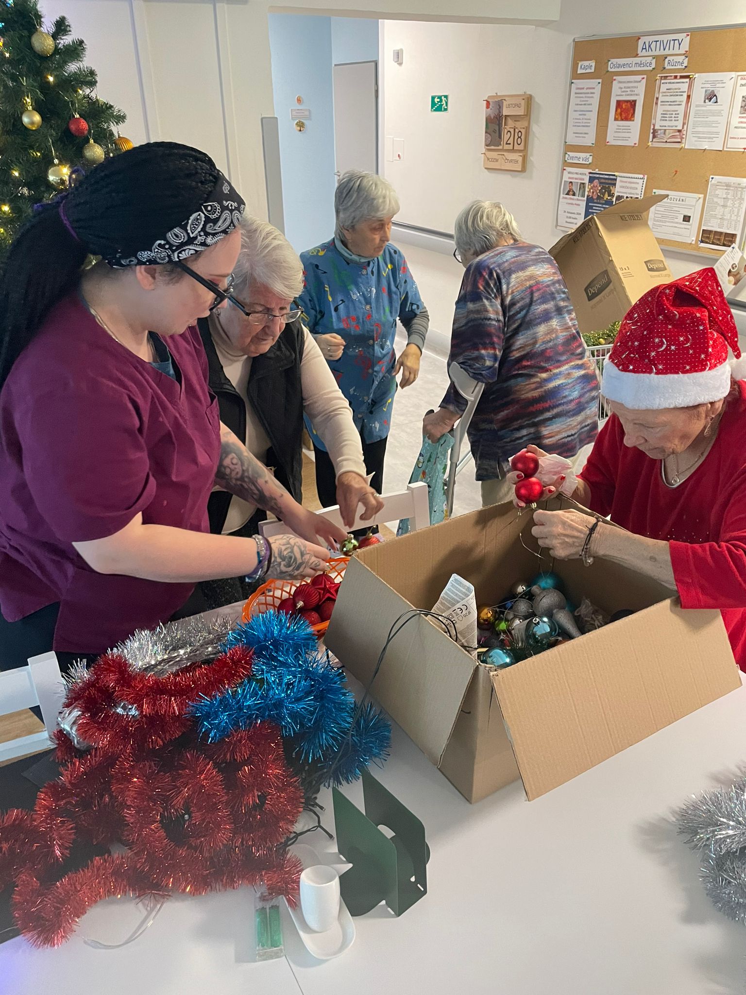 A nezůstalo jen u věnců. Každé patro domova zdobil vánoční stromek s ručně vyráběnými dekoracemi a ozdobami, na jejichž vytváření se klienti společně podíleli. A nejednalo se jen o tradiční ozdoby, ale také například o originální papírové květiny.