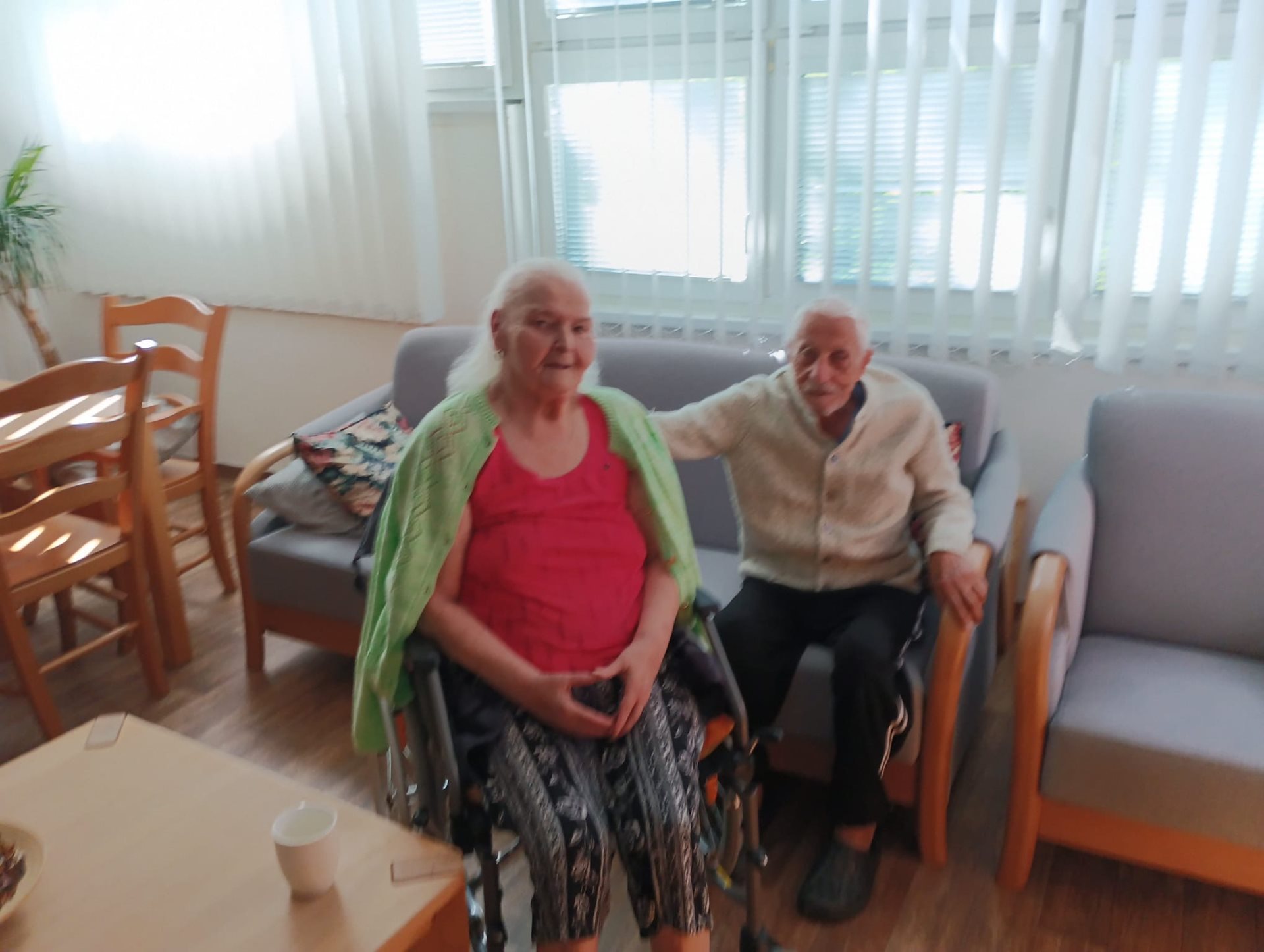 Paní Eva a pan Miroslav společně poslouchali české písně ve společenské místnosti patra B3. Poté pan Miroslav písně i zpíval.