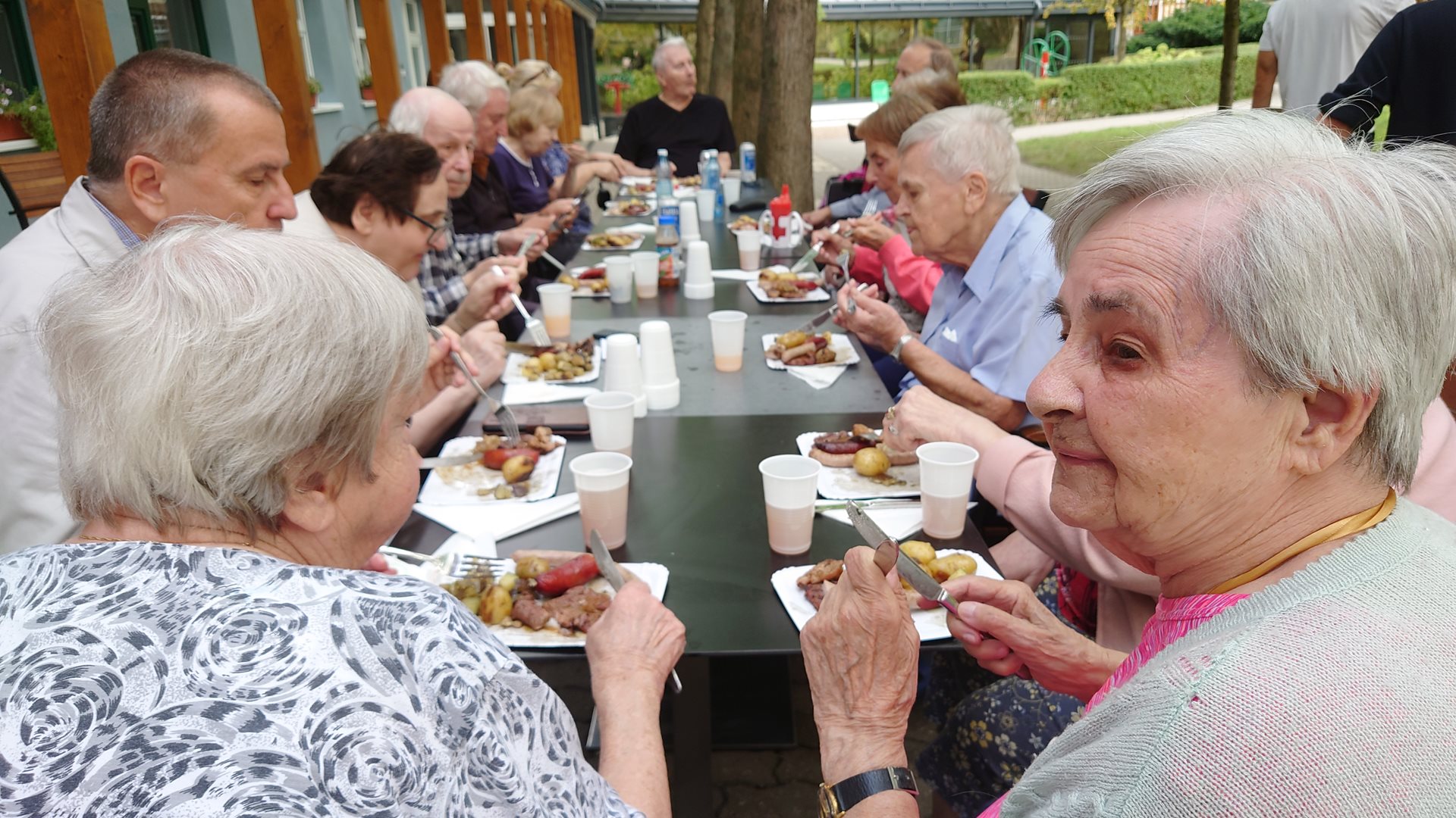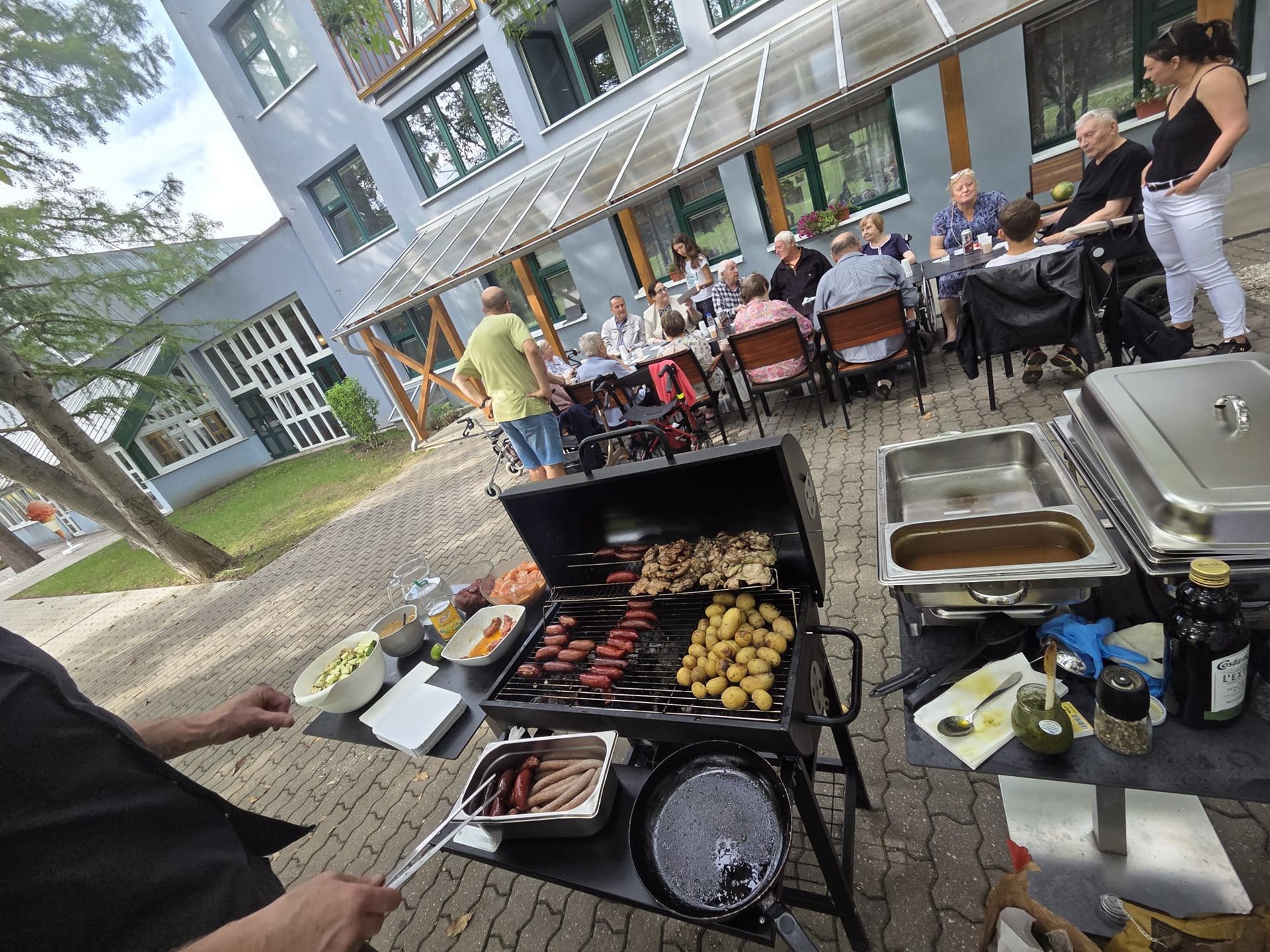 Klienti domova B trávili společné odpoledne grilováním za přítomnosti rodin a aktivizačních pracovníků.