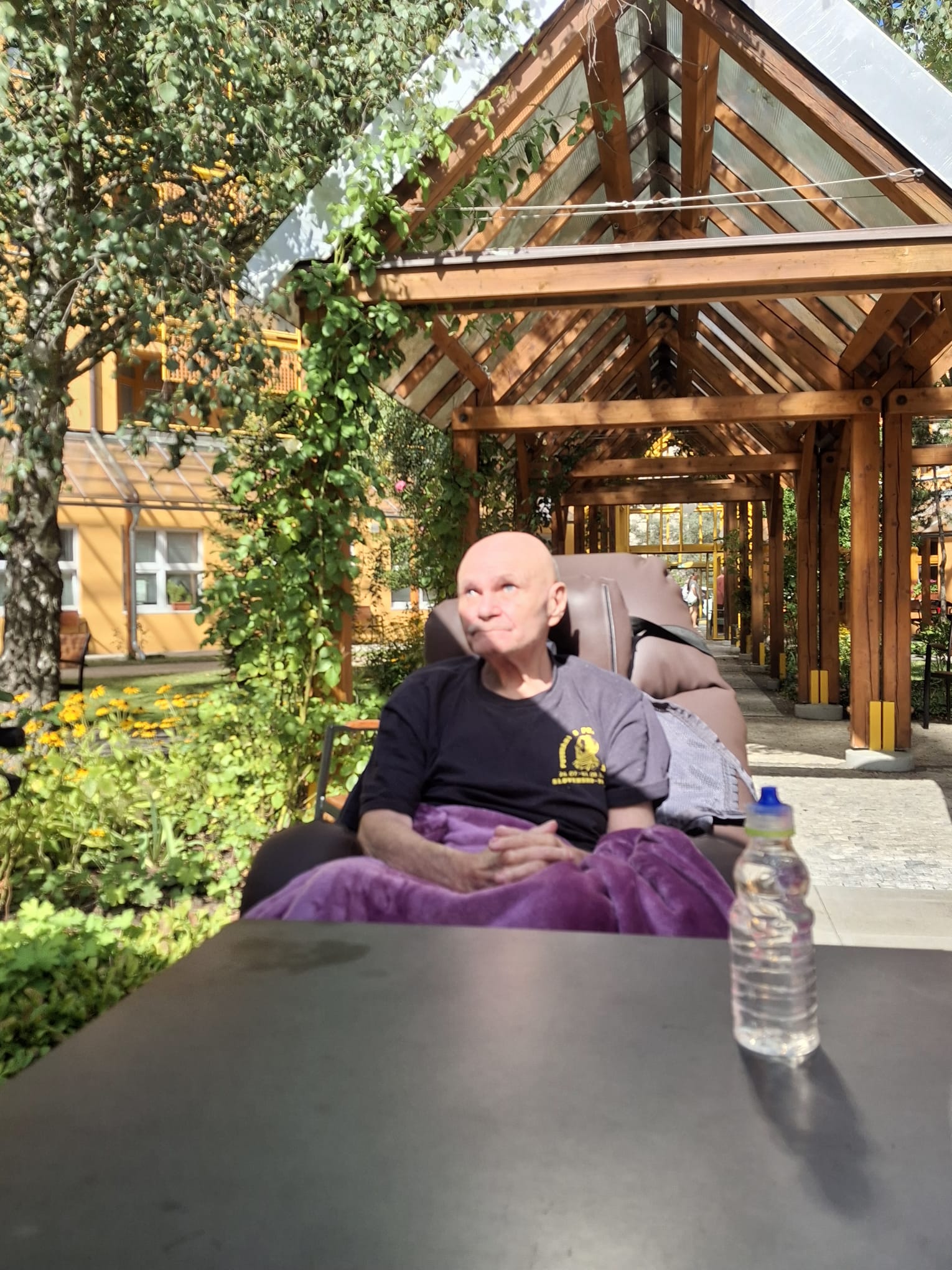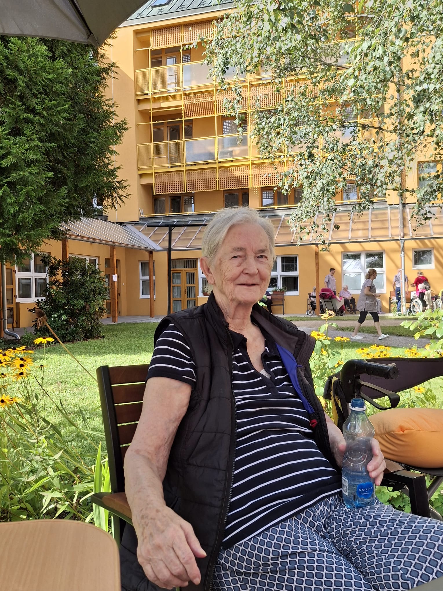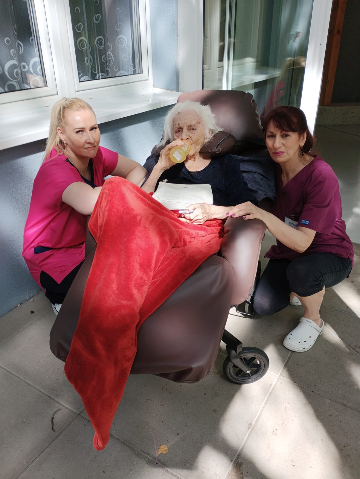 Klienti domova B si užívali poslední teplé dny na zahradě Domova. Společně si povídali, pili kávu.