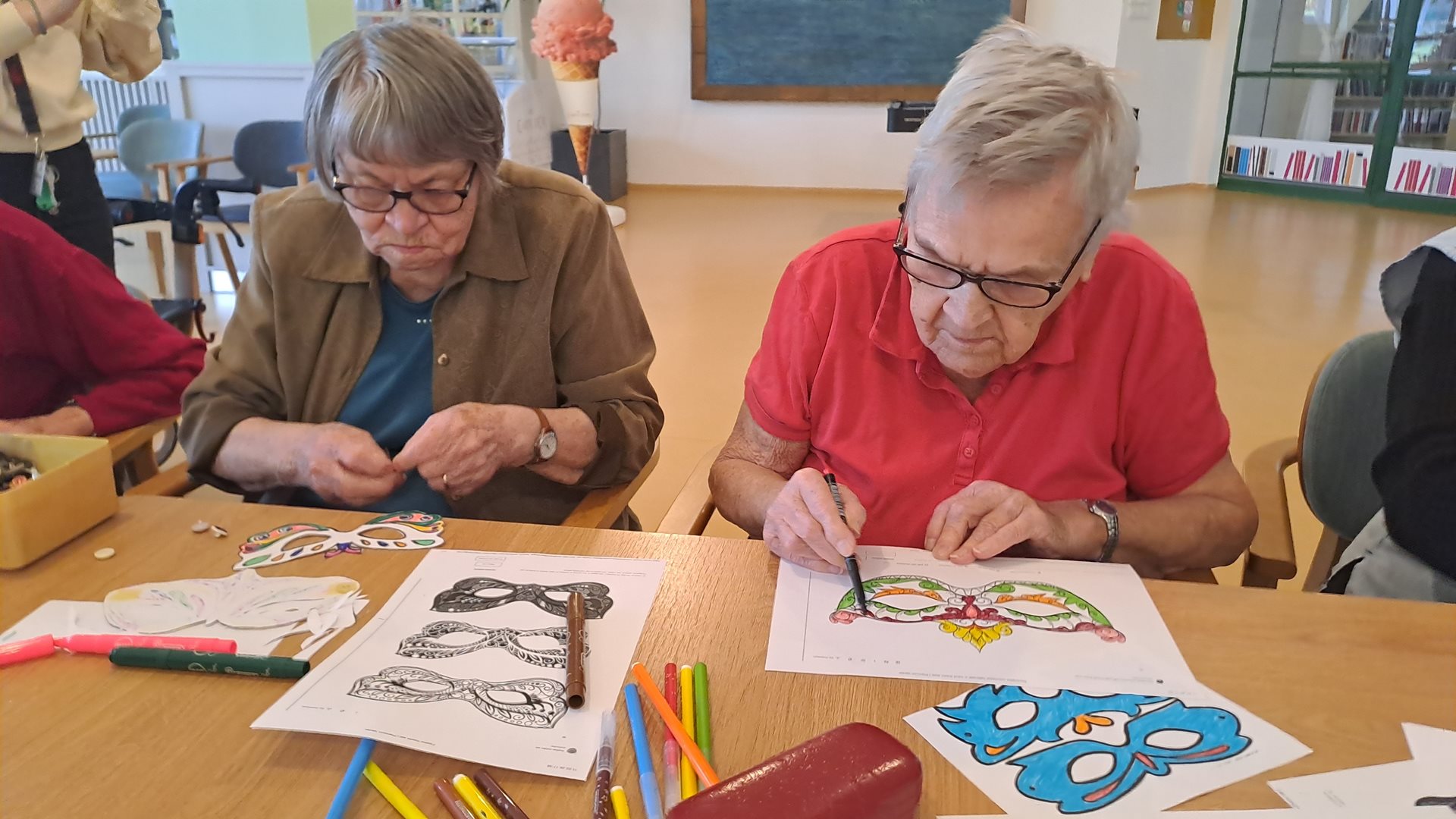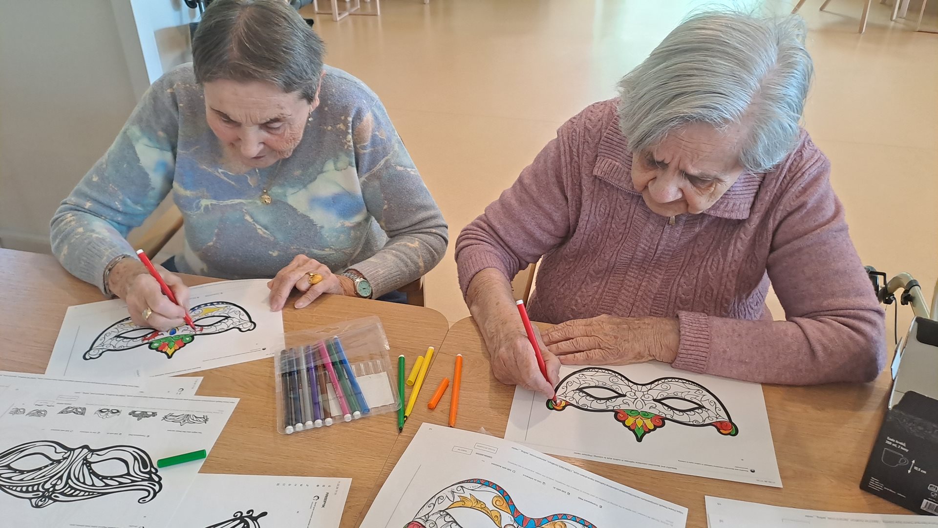 V posledních dnech v Domově vrcholí přípravy na maškarní ples. Klientky – tři paní Jiřiny, dále dvě paní Marie, paní Eva, Miroslava, Mária, Olga a Věra se společně s aktivizačními pracovníky Robertem, Adélou a Terezou pustily do výroby škrabošek. Vznikaly masky ďábelské i elegantní, každý si vybral podle svého vkusu a momentální nálady. Při tvoření panovala veselá atmosféra, nechyběl smích ani radost ze společné práce.