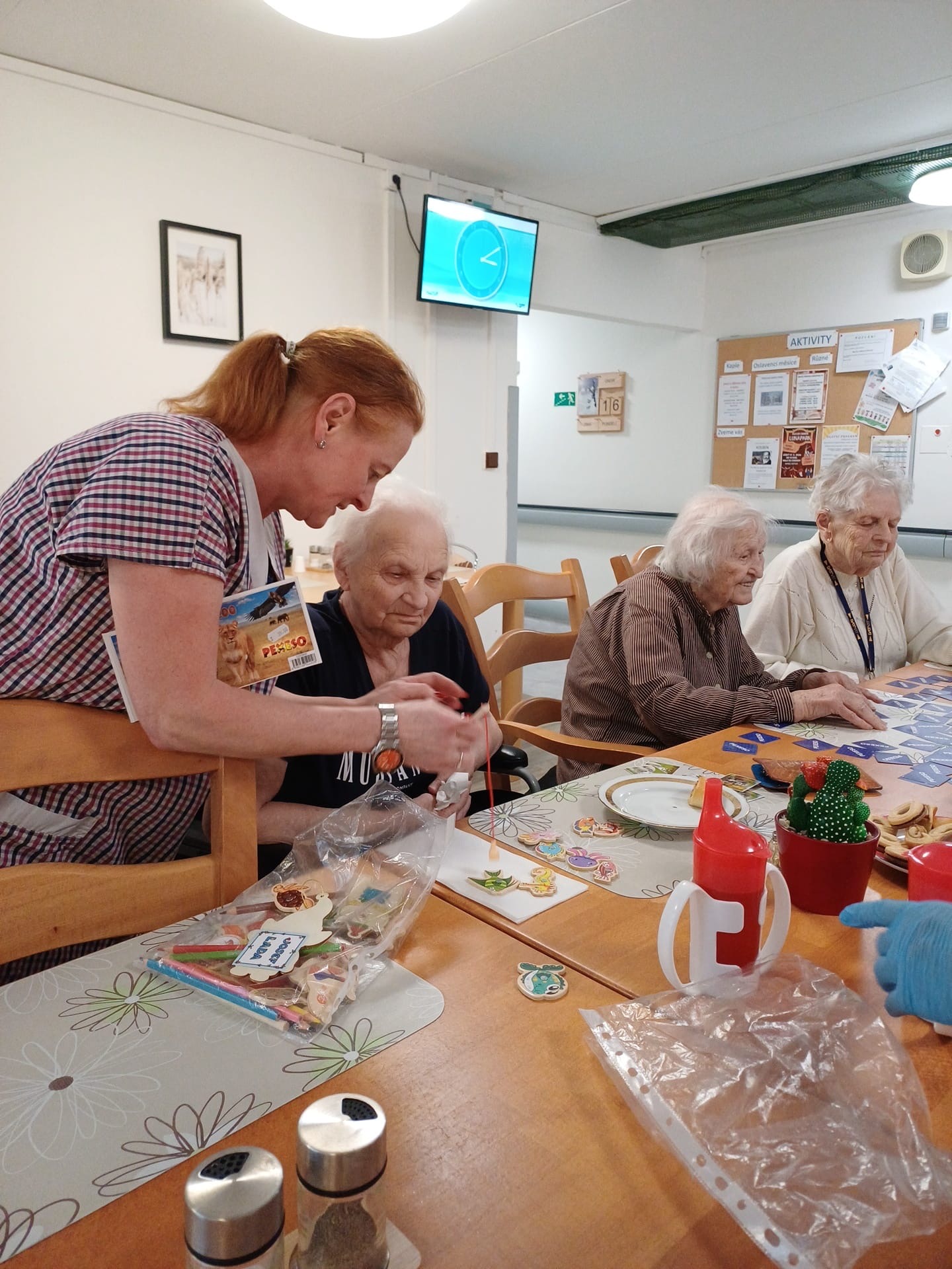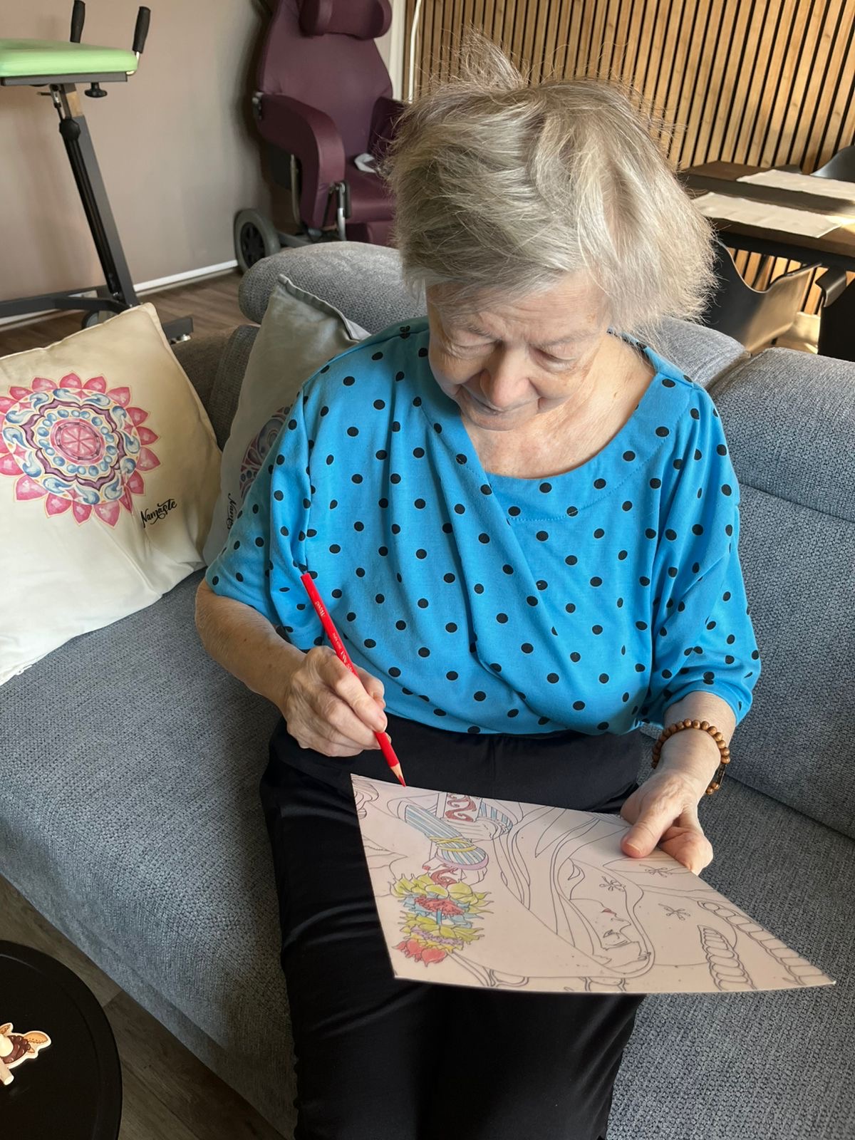 Klientka paní Věra si společně s pečovatelkou Maruškou užily klidné a příjemné odpoledne při hře a výtvarných činnostech. Společný čas byl zaměřen na podporu jemné motoriky, soustředění a radosti z tvoření, zároveň přispěl k posílení vzájemného kontaktu a dobré nálady klientky.