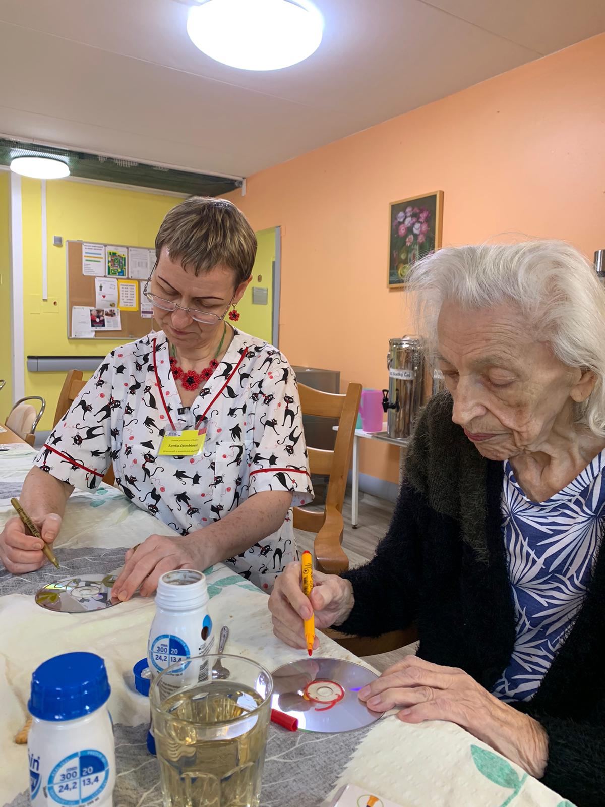 Klienti a pečovatelky na patře B1 se v průběhu celého měsíce věnovali různým kreativním činnostem. Vybarvovali mandaly, zdobili si stará CD a také trénovali jemnou motoriku pomocí lepení kamínků na obrázky.