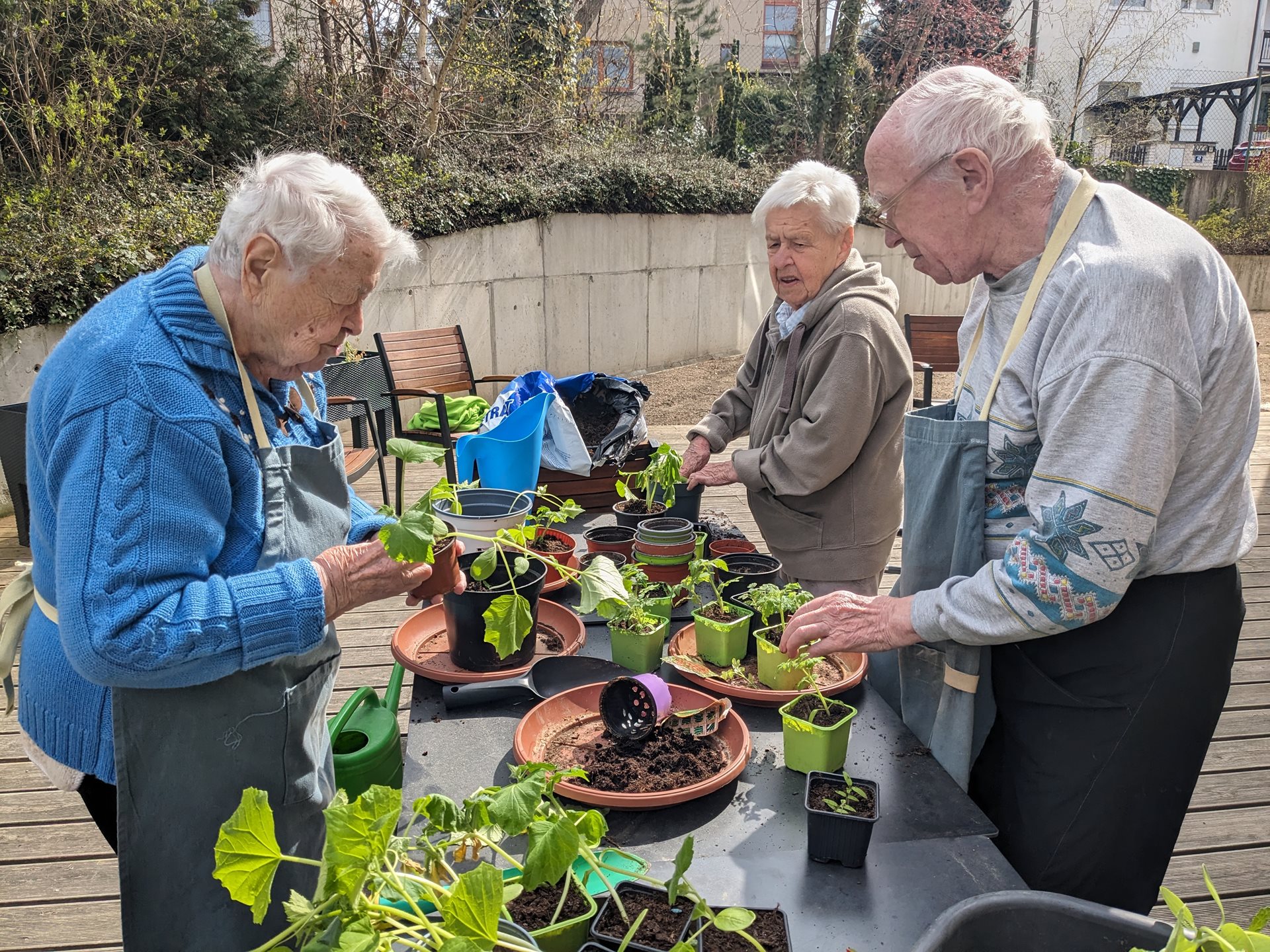Vypěstované sazenice rajčat, okurek hadovek a okurek nakládaček bylo třeba přesadit a samozřejmě o ně dál s láskou pečovat, jako doposud.