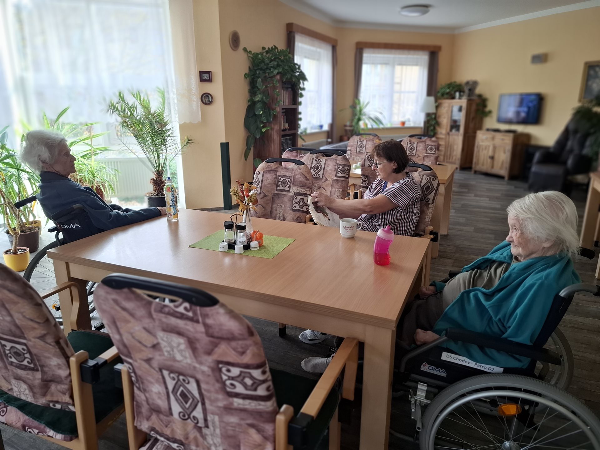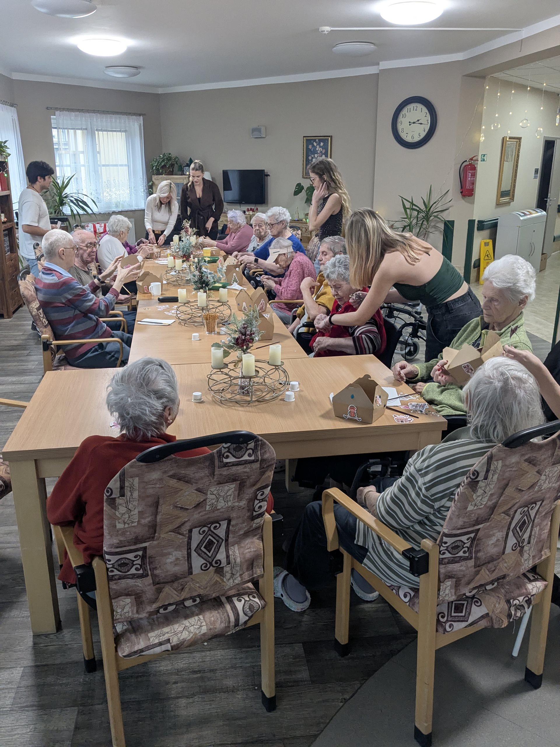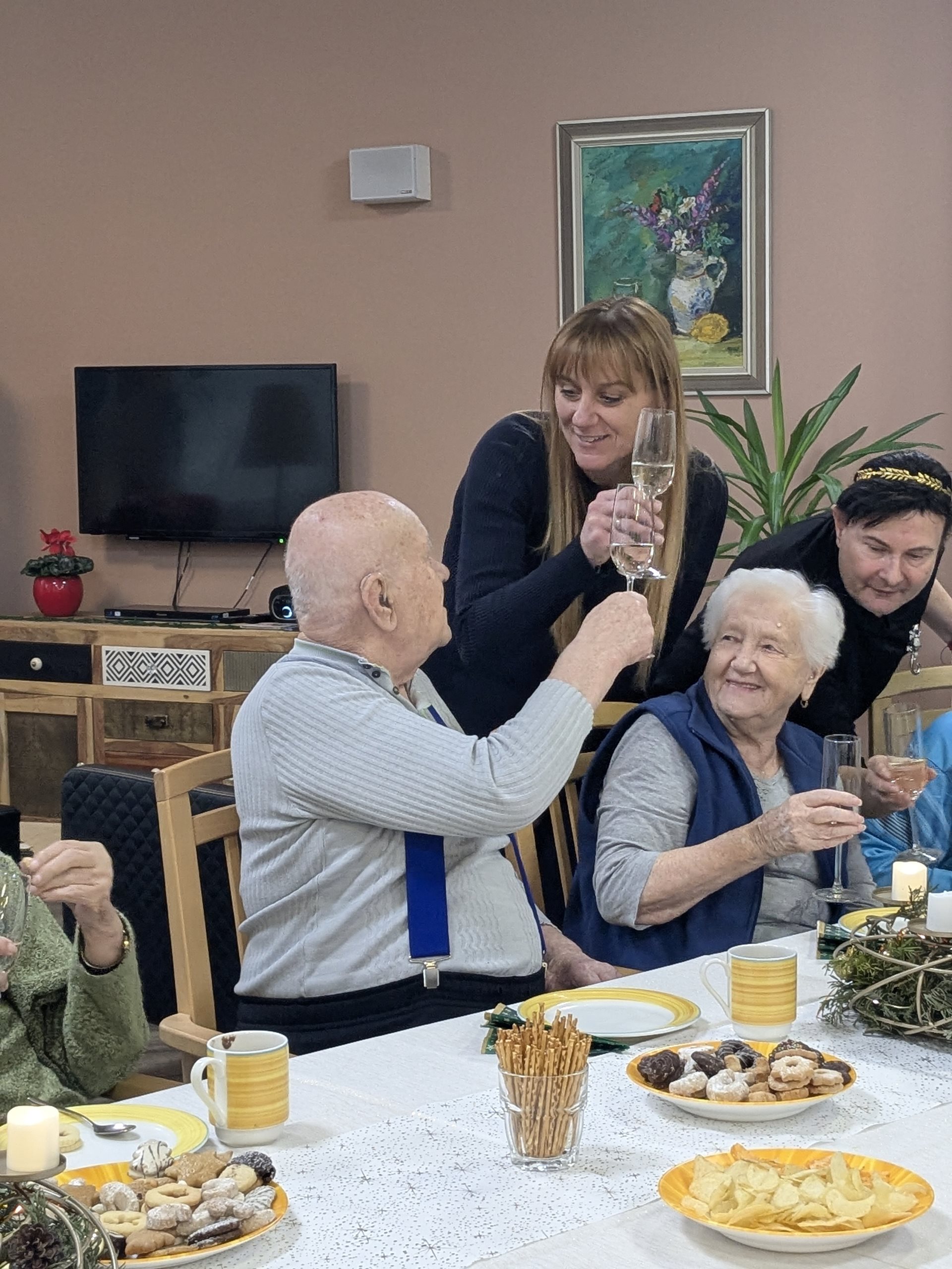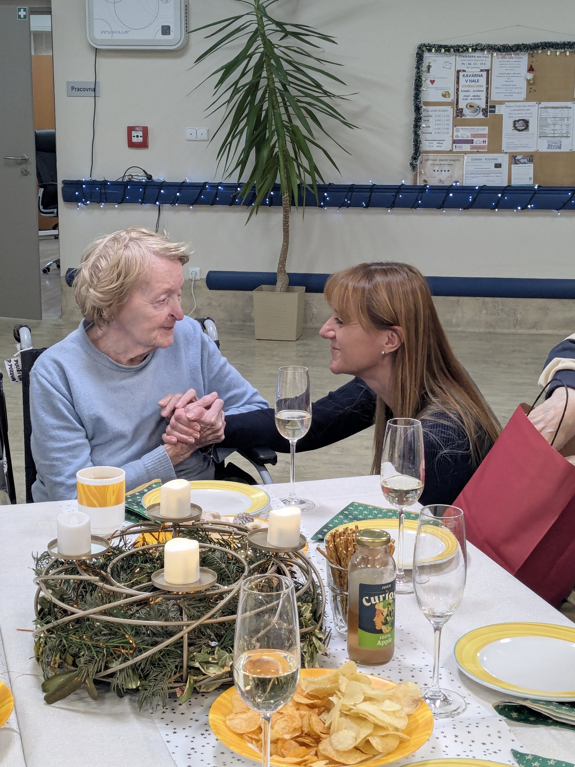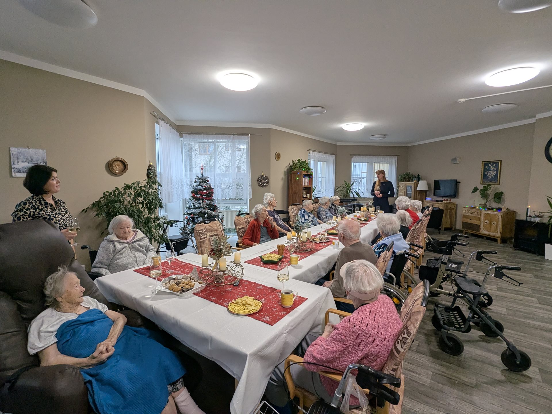 Závěr roku se v domově nesl ve znamení sváteční pohody, radosti a společných setkání. V prosinci proběhly vánoční večírky, kde nechyběla dobrá nálada, občerstvení a příjemná atmosféra. Tradičně klienty navštívila také paní ředitelka, která přišla obyvatelům domova osobně popřát krásné prožití vánočních svátků a předat dárky.