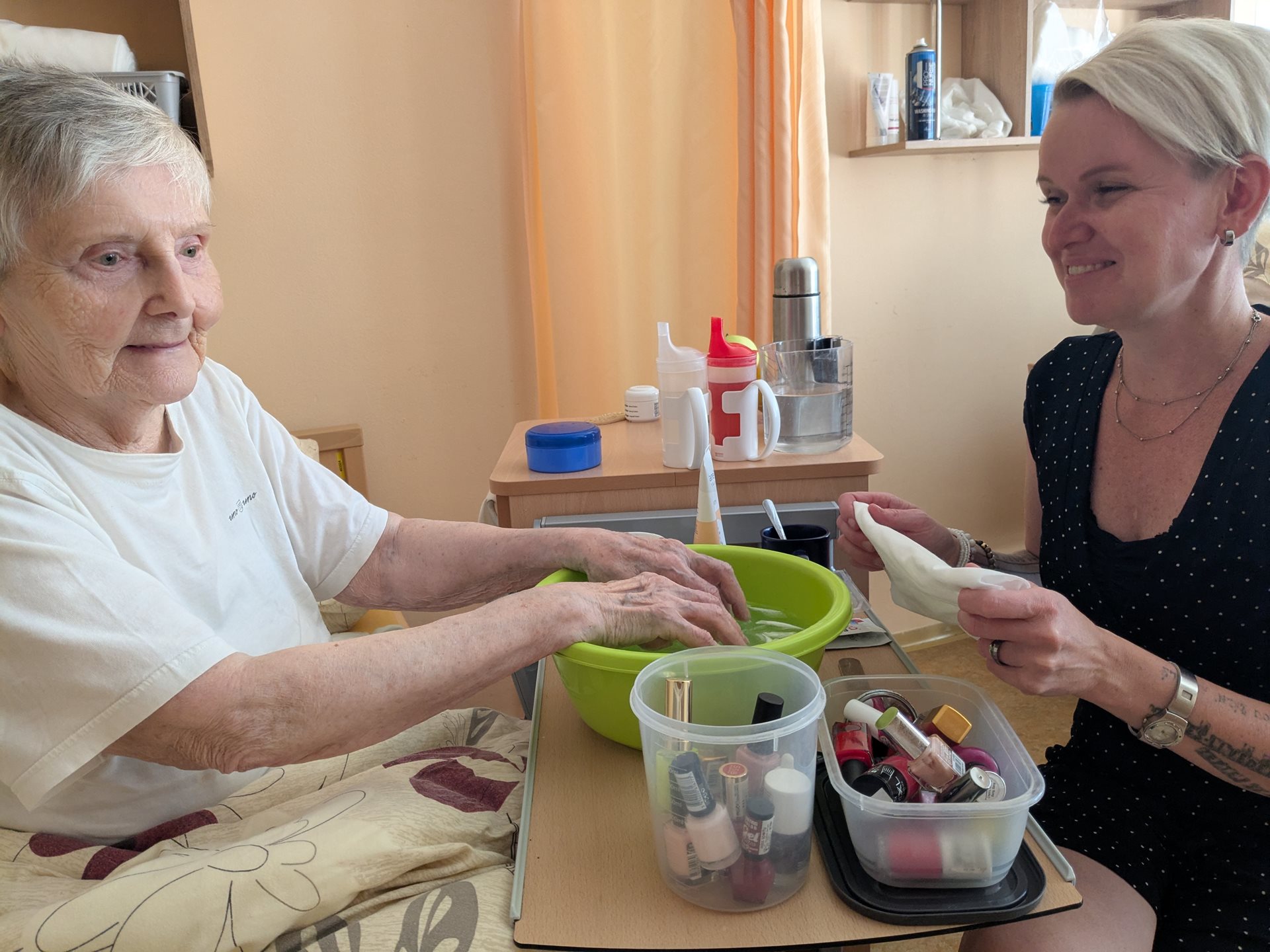 Ani přípravu na slavnost jsme nepodcenili, stejně jako klientky, které si mohly nechat od aktivizačních pracovnic Šárky a Barbory nalakovat nehty přesně podle svých přání.