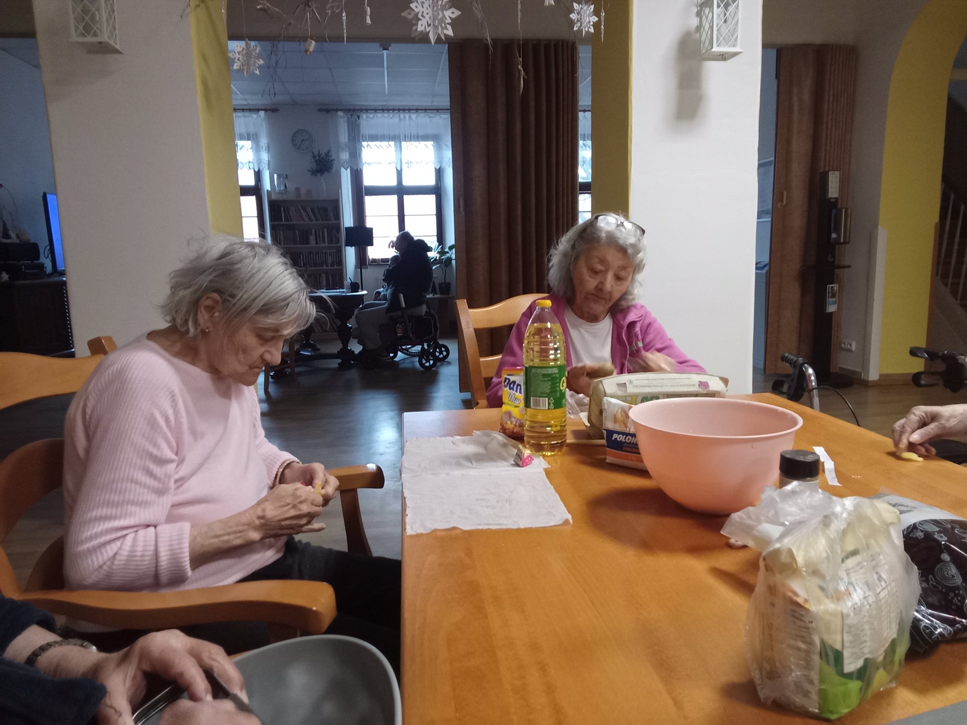 Nesmíme opomenout ani pravidelné kulinářství, které je u klientů velice oblíbené. Po domluvě s aktivizační pracovnicí Barborou si vždy připraví něco dobrého na zub. Tentokrát to byly bramboráky, jejichž vůně se linula celým domovem. Paní Zdena si vždy ráda připomene své kuchařské dovednosti a zavzpomíná na své kuchařské počiny.