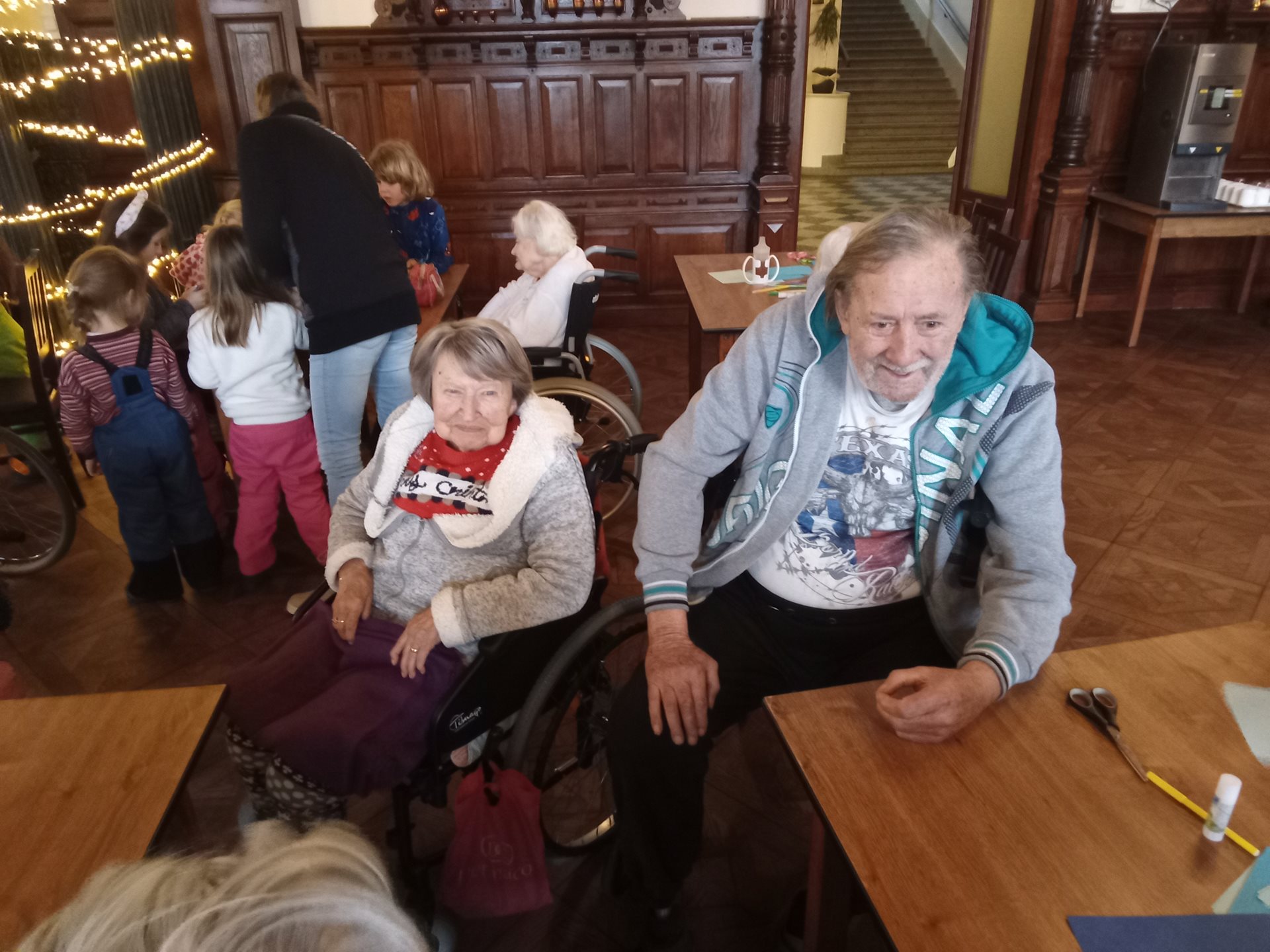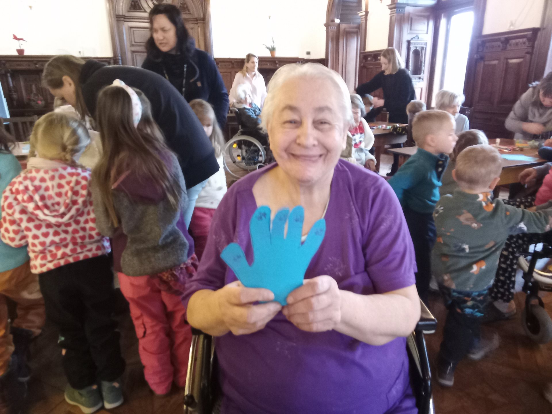 Domov navštívily děti z rodinného centra Zaya v rámci projektu Mezi námi. Společně s klienty si vyrobili koláže s pomocí otisku dlaní a děti přednesly básničky a předvedly pantomimu.