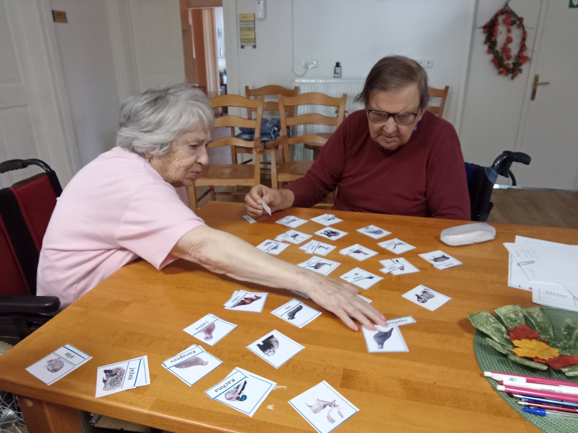 Během trénování paměti s Margit si klienti nejen trénovali svůj mozek, ale také motoriku. Například při skládání obrazců.