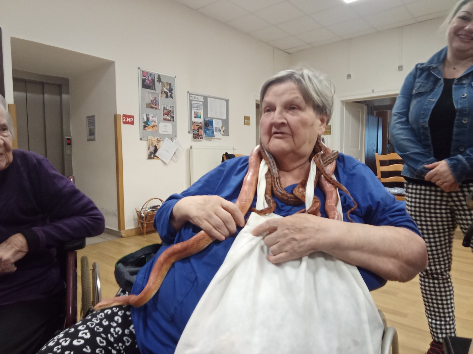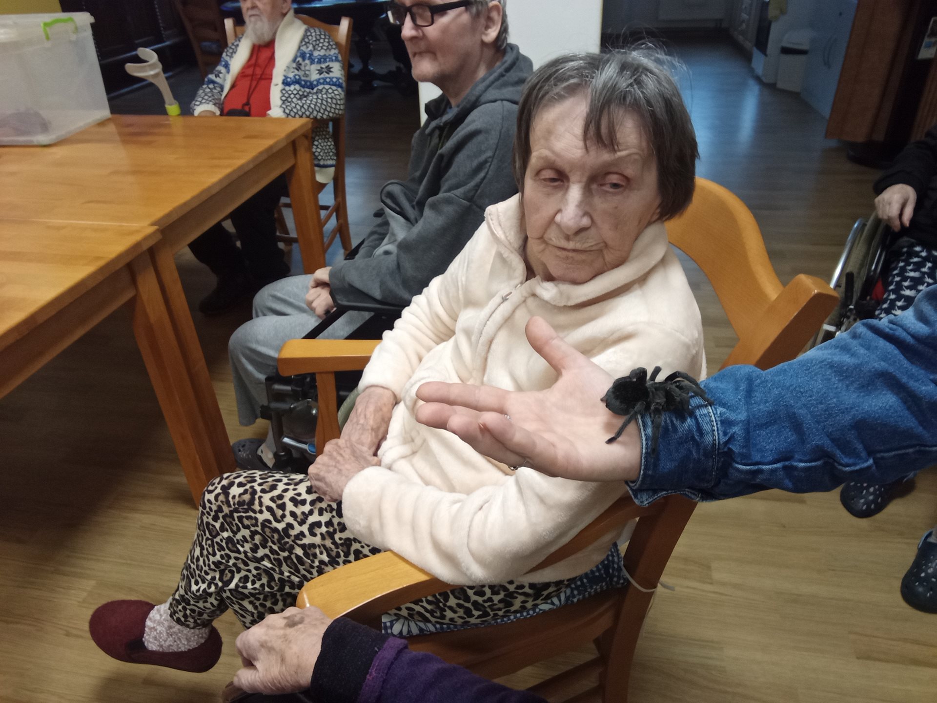 Během posledního lednového pracovního dne měli klienti v Pyšelích možnost zblízka si prohlédnout exotická zvířata, která jim přivezla ukázat Irma z Therapy4you.