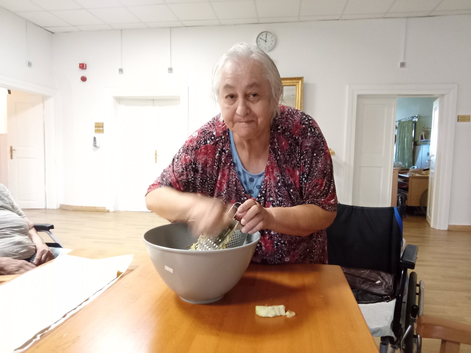 Při kulinářském dopoledni s aktivizační pracovnicí Barborou si klientky upekly doslova zámecký jablečný závin, protože byl udělán z jablek ze zámeckého sadu.