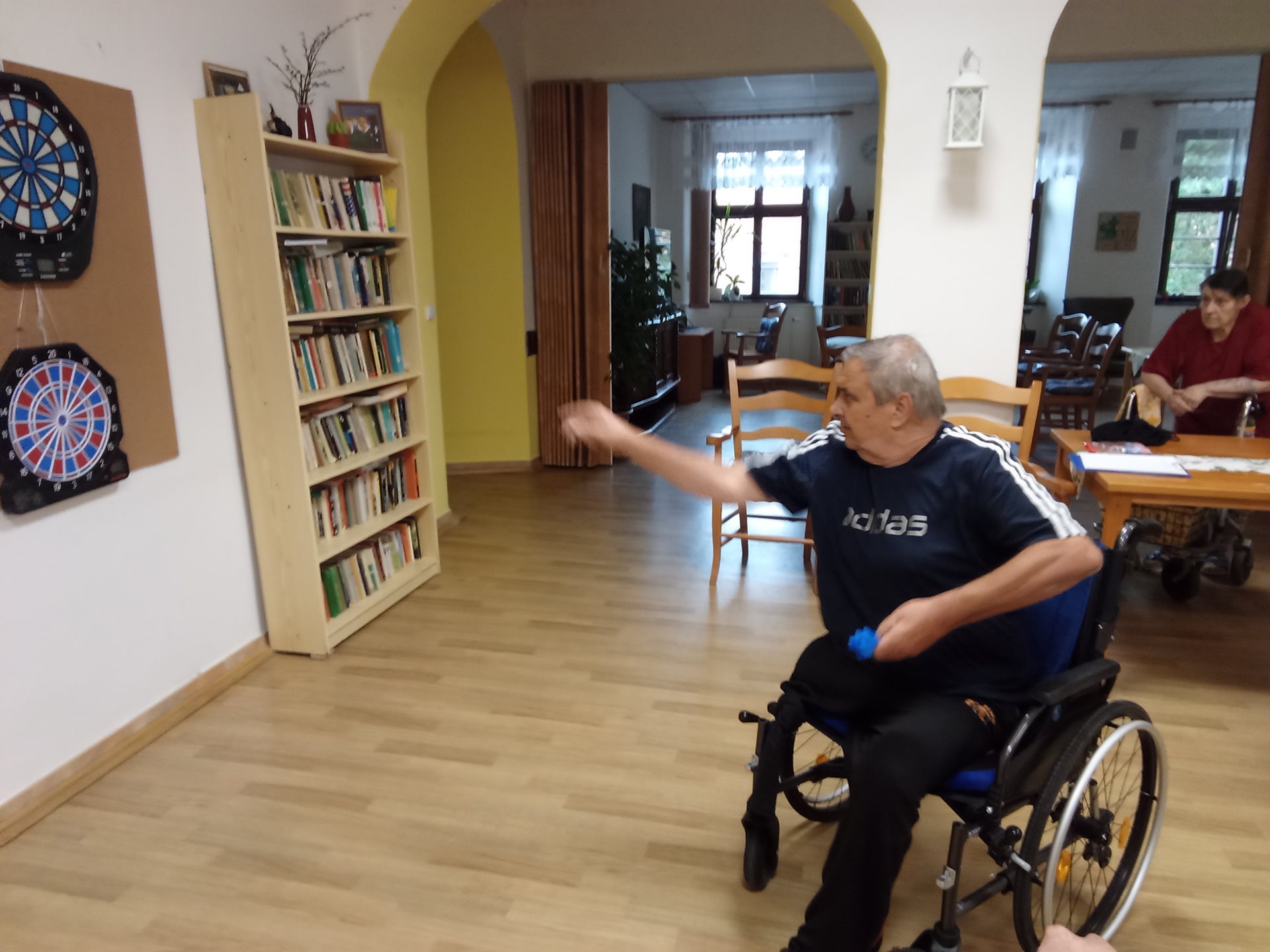 Šipkové družstvo domova Pyšely začíná pod trenérským vedením aktivizační pracovnice Barobory trénovat na turnaj XV. Chodovská šipka, který se bude konat začátkem měsíce října v pražském Domově. A pan Milan, pan František a paní Jana rozhodně nechtějí přípravy podcenit. A nejen šipky se hrají v domově Pyšely, ale velikou oblibu si získal také kulečník.
